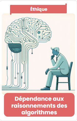 La dépendance aux raisonnements algorithmiques, comme conséquence de l’intégration de l’IA, signifie que les décisions de l’entreprise peuvent progressivement reposer majoritairement sur les analyses et recommandations produites par des systèmes automatisés, parfois au détriment de l’intuition, de l’expérience ou du jugement humain. Positivement, cela peut améliorer la précision, la rapidité et la cohérence des choix, en réduisant certains biais et en exploitant de vastes ensembles de données. Toutefois, cette dépendance comporte un revers : risque de perte de compétences critiques, d’acceptation aveugle des résultats fournis, ou de vulnérabilité face à des erreurs ou dérives du modèle. Pour l’entreprise, l’enjeu est de maintenir une complémentarité équilibrée entre l’apport de l’IA et la capacité de discernement humain, afin de garantir des décisions robustes et responsables.
