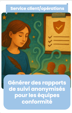 Générer des rapports de suivi anonymisés pour les équipes conformité